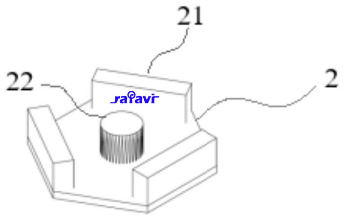 根据本实用新型的一些实施例,参照图2,盖体2为正六边形,正极端子21为三个,三个正极端子21沿盖体2的周向均匀间隔设置,且每个正极端子21与盖体2的对应侧边相连。如此设置,可以使盖体2的结构更加规整,且盖体2的结构简单,方便加工。