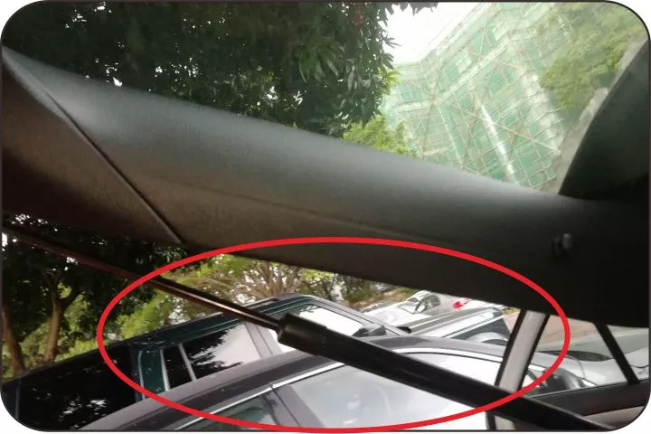 5. 拆下原车撑杆,更换我司电动撑杆。(撑杆线束进尾门有所区别,具体可查看说明书)