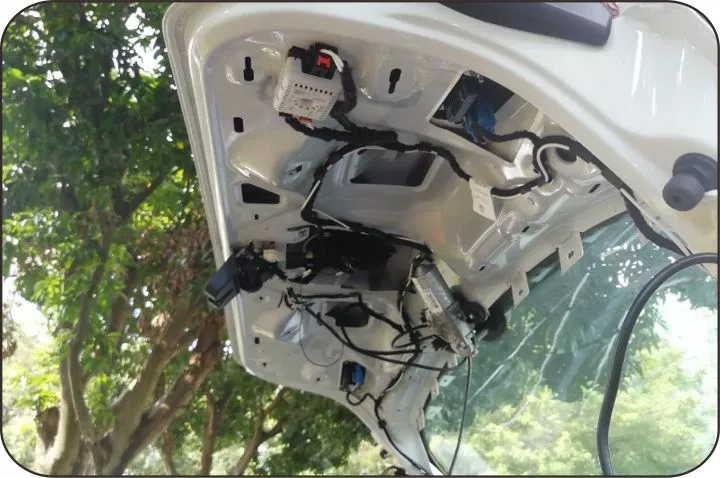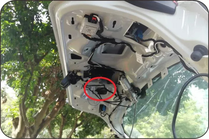 (个别车型撑杆线进入尾门需打孔,一定要在完全测试正常之后再进行开孔)