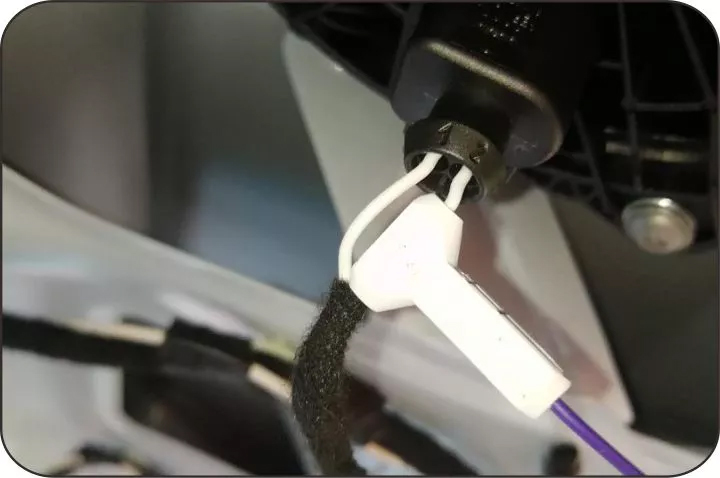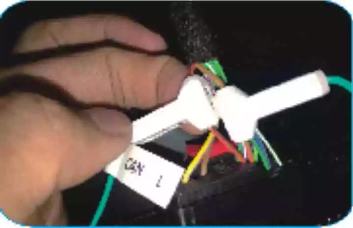 3. 安装尾门锁机三通转接线,连接尾门扣手开关负触发信号线(我司为紫色线)